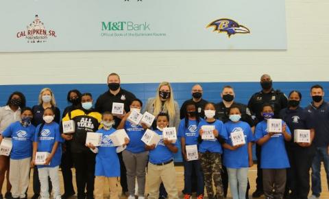 The Ripken Foundation partnered with the Bozeman Foundation to kick off their SYNC Snack program with the Boys and Girls Club of Metro Baltimore! The Bozeman Foundation was founded in 2018, by Baltimore Ravens player, Bradley Bozeman and his wife Nikki to provide resources to at-risk youth in Baltimore city. The SYNC Snacks program brings mobile support to the City’s at-risk youth by combining kid-friendly and shelf-stable snacks with educational support materials that are key to ending the academic inequities facing too many children living in underserved communities. During this event the Ripken team and Baltimore City Police officers played a game of Whoosh ball with the youth. They then received their snack boxes to take home!
